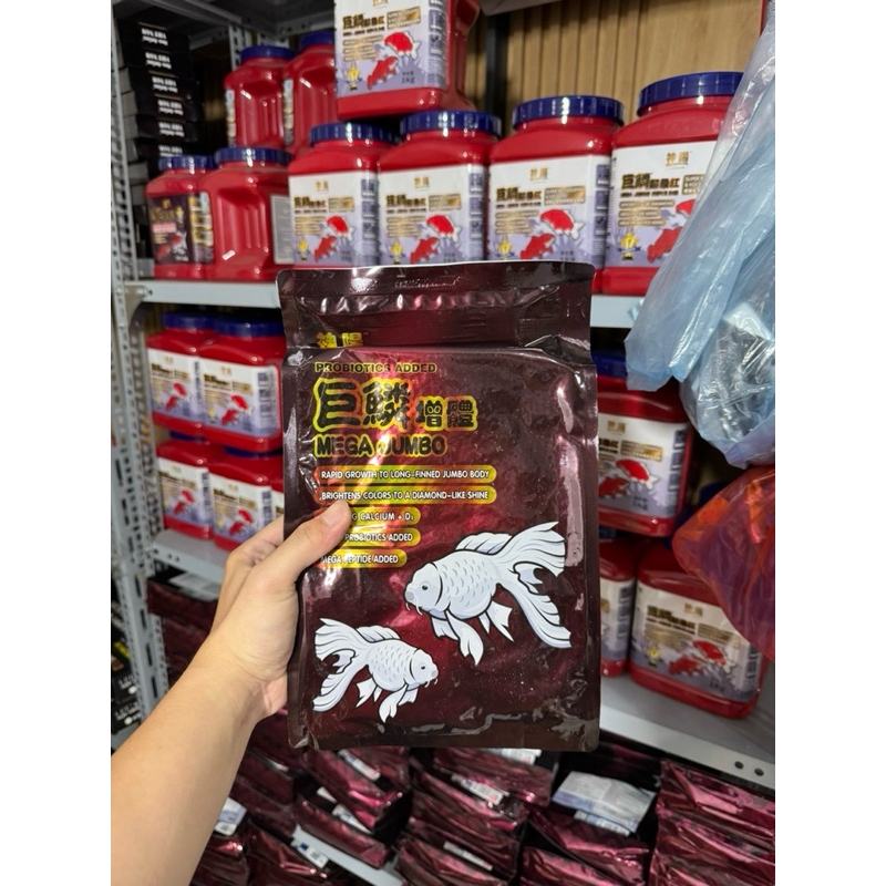 🐠 THỨC ĂN CHÉP SƯ TỬ – PHI TẦN MEGA JUMBODành riêng cho những chú cá cảnh cao cấp – Thân dày, vây dài, màu sắc rực rỡ🌟 CÔNG DỤNG NỔI BẬTPhát triển thân hình chuẩn đẹp: Giúp cá chép sư tử, phi tần phát triển thân dày, body đầy đặn, vây bung dài, đẹp tự nhiên.Tăng bóng da & vây: Công thức đặc biệt giúp da và vây cá trở nên sáng bóng, nổi bật dưới ánh sáng.Tăng cường sắc tố: Hỗ trợ làm nổi màu da tự nhiên, giúp cá luôn rực rỡ và khỏe mạnh.Hỗ trợ tiêu hóa & miễn dịch: Bổ sung men vi sinh giúp giảm vi khuẩn có hại trong đường ruột, tăng sức đề kháng.Cân bằng dinh dưỡng tối ưu: Tỷ lệ vàng giữa protein, vitamin, khoáng chất giúp cá hấp thụ dễ dàng và phát triển toàn diện.✨ Sản phẩm được nghiên cứu dựa trên tập tính và môi trường sống của cá chép sư tử & phi tần – kết hợp công nghệ sản xuất hiện đại cùng công thức chuyên biệt của Mega Jumbo.🧪 THÀNH PHẦN DINH DƯỠNGProtein thô: 45%Chất béo thô: 5%Chất xơ thô: 5%Tro thô: 16%Natri Clorua: 2%Canxi: 1.2%Phốt pho: 1.0%📌 HƯỚNG DẪN SỬ DỤNGCho ăn 1–2 lần/ngày, mỗi lần tối đa 10 phút.Vớt bỏ phần thức ăn thừa sau 10 phút để tránh ảnh hưởng chất lượng nước.👉 Mega Jumbo – Sự lựa chọn hàng đầu cho cá chép sư tử và phi tần muốn phát triển body chuẩn, vây đẹp, màu sắc nổi bật.