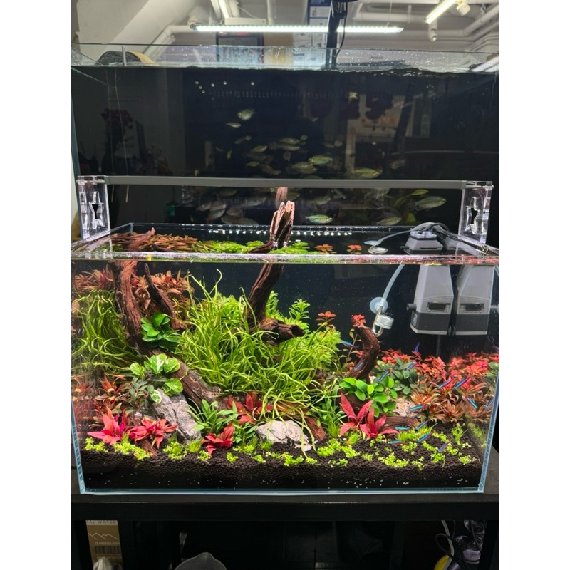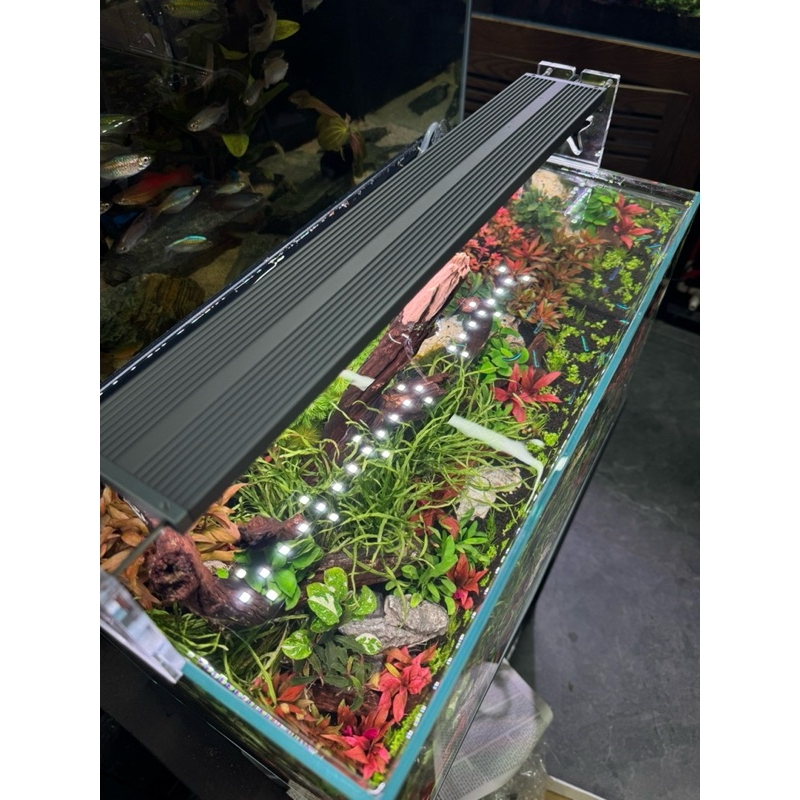 Đèn LEDSTAR AQ-S (Slim Smart) WRGB là sự kết hợp tinh tế giữa công nghệ tiên tiến và thiết kế đẳng cấp. Với chip Led RGB+W cao cấp và khả năng chống nước IP68, đèn không chỉ đảm bảo an toàn mà còn kích thích quá trình quang hợp cho cây và cá tép trong bể thủy sinh của bạn, tạo nên không gian sống động và màu sắc tự nhiên.**Đèn LED RGB+W Hướng Tới Màu Sắc Tự Nhiên:**- AQ-S là phiên bản đèn gác hướng tới ánh sáng tự nhiên. Với tỉ lệ cân bằng giữa Ánh sáng trắng và RGB mang lại màu sắc chân thực nhất cho chiếc bể thủy sinh, người chơi sẽ được hòa mình vào thiên nhiên tươi mới**Đèn Với Thiết Kế Thẩm Mỹ và Tiện Lợi:**- Vỏ nhôm nguyên khối CNC đầy tinh xảo với màu Grey cực sang trọng- Chân gác kiểu U vuông liền mạch với thiết kế chống mao dẫn thông minh, đèn không chỉ thẩm mỹ mà còn linh hoạt cho bể có kích thước đa dạng.- Chân đèn có thể mở rộng 5cm mỗi bênThông số sản phẩm:1. AQ-S 40 (40cm)Công suất: 32WLuman: 2100lmPhù hợp bể: 40-50cm2. AQ-S 45 (45cm)Công suất: 35WLuman: 2280lmPhù hợp bể: 45-50cm3. AQ-S 50 (50cm)Công suất: 38WLuman: 2100lmPhù hợp bể: 50-60cm4. AQ-S 60 (60cm)Công suất: 42WLuman: 2650lm**Khả năng kháng nước độc đáo**- Với tiêu chuẩn kháng nước IP68 tưởng chỉ có trên các điện thoại cao cấp, Đèn LedStar hoàn toàn kháng nước giúp bảo vệ người dùng khỏi các trường hợp không mong muốn ... thật bất ngờ**Điều Khiển Linh Hoạt Thông Qua Ứng Dụng:**- Sử dụng công nghệ bluetooth 5.0 mới nhất, mang lại phản hồi lập tức qua ứng dụng AQ STAR trên IOS và Android kết nối và điều khiển đèn một cách thuận tiện. Điều chỉnh màu sắc và độ sáng, mô phỏng ánh sáng bình minh/hoàng hôn để tạo ra không gian độc đáo cho bể của bạn.