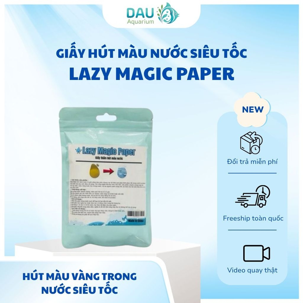 Giấy Thấm Hút Màu Nước – Giải Pháp Làm Trong Nước Hiệu Quả Chỉ Sau Một ĐêmGiới thiệu sản phẩmGiấy thấm hút màu nước là giải pháp đơn giản nhưng cực kỳ hiệu quả giúp khôi phục độ trong suốt tự nhiên của nước chỉ sau một đêm sử dụng. Với công nghệ hấp thụ màu tiên tiến, sản phẩm nhanh chóng loại bỏ các tạp chất, màu vàng hoặc đục trong nước, trả lại nguồn nước trong vắt, an toàn cho hệ sinh thái hồ cá và cây thủy sinh.Công dụng nổi bậtLàm trong nước nhanh chóng, hiệu quả chỉ sau 8–12 giờ.Hấp thụ mạnh mẽ các chất hữu cơ, tannin, màu vàng từ lá khô hoặc nền đất.Giúp ổn định chất lượng nước, hỗ trợ hệ lọc hoạt động tối ưu hơn.Dễ sử dụng, phù hợp cho bể cá, hồ thủy sinh, bể cảnh và ao mini.Cách sử dụngRửa nhẹ giấy bằng nước sạch để loại bỏ bụi bẩn bề mặt.Đặt giấy vào ngăn lọc hoặc khu vực có dòng chảy trong hệ thống lọc.Sử dụng 1 tờ cho 5–10 lít nước, tùy theo độ đậm của màu nước.Khi giấy chuyển sang màu sẫm, nghĩa là đã hết khả năng hấp thụ và không thể tái sử dụng.Lưu ý khi sử dụngTránh dùng trong hồ có cá hoặc cây quá nhạy cảm, đang bị bệnh hoặc yếu.Bảo quản nơi khô ráo, tránh ánh nắng trực tiếp.Không sử dụng lại giấy đã qua hấp thụ.
